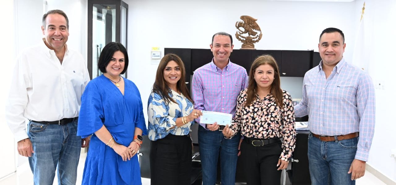 El alcalde Emilio de Hoyos Montemayor recibió a las representantes y gerentes de supermercado Gutiérrez: Elizabeth y Adriana Gutiérrez Salinas, que en representación de la fundación entregaron el cheque por un millón de pesos.