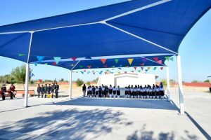 12 Septiembre 2023; Monclova, Coahuila.- Por segunda semana consecutiva, el Ayuntamiento hizo la entrega de un techo de malla sombra, en beneficio de los alumnos de la escuela, Francisco González Bocanegra; la obra consta de malla sombra tensada en una superficie de 6 x 10 metros, en la que se aplicó una inversión cercana a los 200 mil pesos.