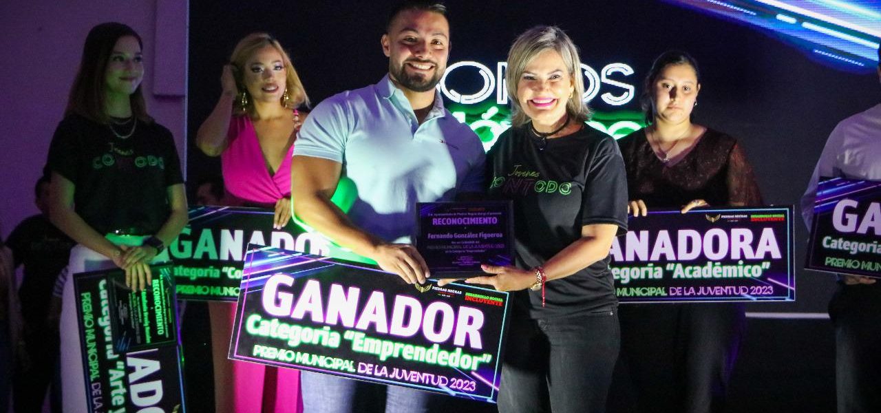 12 Septiembre 2023; Piedras Negras, Coahuila.- Ante un foro de más de 400 jóvenes, la alcaldesa de Piedras Negras, Norma Treviño Galindo, entregó el Premio Municipal de la Juventud 2023, a los jóvenes nigropetenses más destacados en las áreas deportiva, liderazgo, arte, académico, ciencia y tecnología; y emprendimiento.