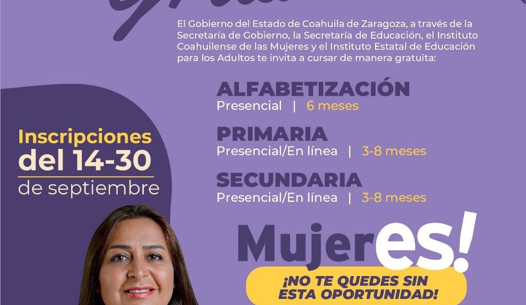 COAHUILA ABRE CONVOCATORIA PARA QUE MUJERES ESTUDIEN PRIMARIA Y SECUNDARIA GRATUITAMENTE