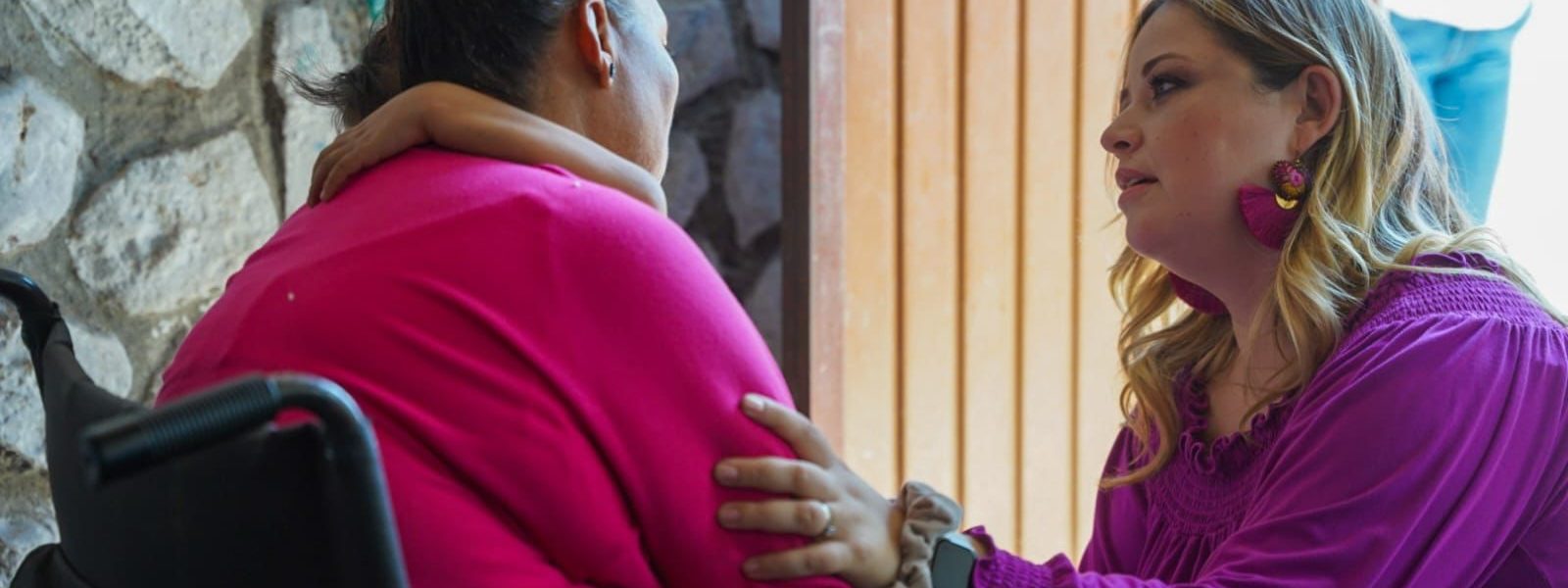 En la colonia Cañadas de Mirador, Cavazos Cuéllar se reunió con la señora Antonia para llevarle una silla de ruedas estándar que contribuirá a mejorar su desplazamiento, además de entregarle material de curación como gasas, guantes, gel y desinfectante.
