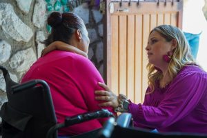 Mientras que, en Valle Poniente visitó el domicilio de don Sergio, a quien llevó una silla de ruedas PCA, junto con sondas y  bolsas recolectoras de orina.