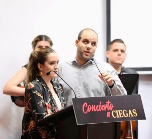 En el concierto, que estuvo a cargo de integrantes de la Orquesta Filarmónica del Desierto, el alcalde José María Fraustro Siller, junto con su esposa Beatriz Dávila de Fraustro, así como otros invitados, vivieron la experiencia con los ojos vendados, en el marco del mes de la discapacidad.