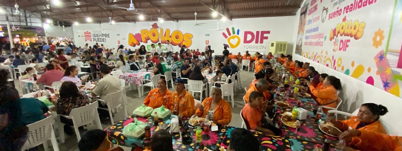 28 Septiembre 2023; Torreón, Coahuila.- Como una muestra de reconocimiento al trabajo que La Ola realiza diariamente para mantener limpias las calles, el día de ayer ciudadanos que acudieron a la Feria de Torreón recibieron al personal con ovaciones dentro del stand “A Pollos”, del Sistema para el Desarrollo Integral de la Familia (DIF) de Torreón.