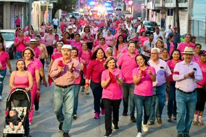 2 Octubre 2023; Monclova, Coahuila.- Al grito de ‘esta lucha si se ve; yo me cuido’ cientos de mujeres monclovenses participaron en la Caminata Rosa encabezada por la primera dama Dra Leticia Carrillo, el doctor Faustino Aguilera titular de la coordinación de la Jurisdicción Cuarta, regidoras, funcionarios municipales y sociedad Civil.
