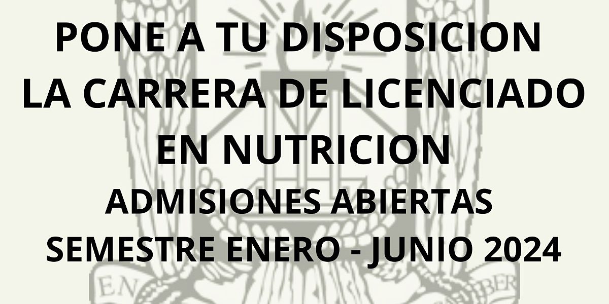 Los interesados podrán registrarse para el examen de admisión antes del viernes 6 de octubre de 2023, en el portal web de Admisiones www.admisiones.uadec.mx; para prepararse como Licenciado en Nutrición, nutriólogo o nutricionista que es el profesional que aplica la ciencia de los alimentos y nutrición para promover la alimentación correcta, optimizando el estado de salud de individuos, grupos, comunidades y poblaciones.