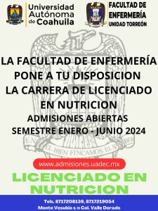 Oferta UAdeC la Licenciatura en Nutrición en la Facultad de Enfermería Unidad Torreón