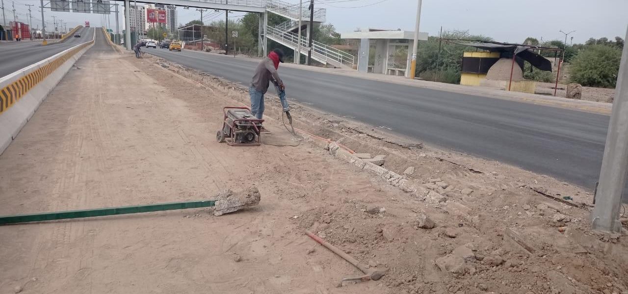9 Octubre 2023; Torreón, Coahuila.- Con la finalidad de mejorar la conectividad en la autopista Torreón – San Pedro, la Dirección de Obras Públicas implementa acciones para adecuar la circulación en el puente del ejido La Concha, dichos trabajos presentan actualmente un 65 por ciento de avance.