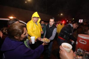 11 Octubre 2023; Saltillo, Coahuila.- Por instrucciones del alcalde José María Fraustro Siller, integrantes del Cuerpo de Bomberos, así como del Patronato de Bomberos de Saltillo acudieron a entregar cobijas, alimentos y bebidas calientes a familiares de pacientes internados en el Hospital General ante las inclemencias del tiempo.