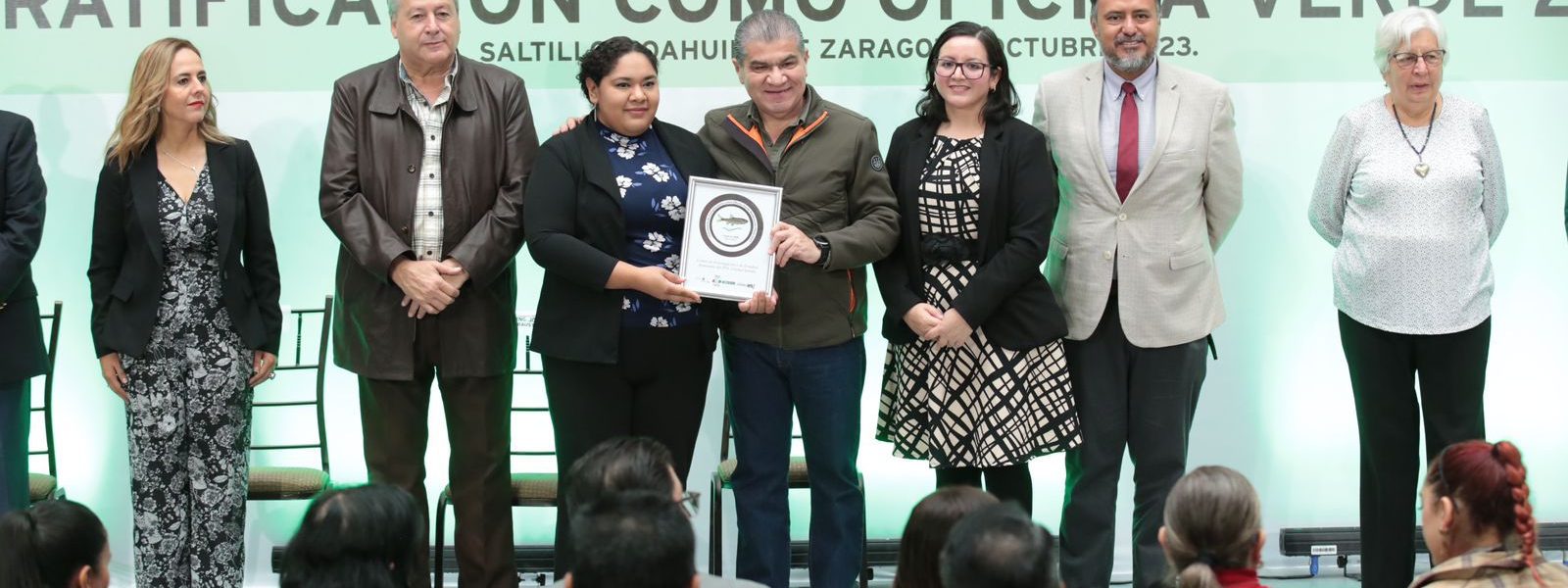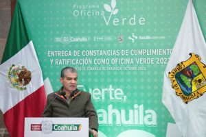 Luego, el Gobernador del Estado entregó las Constancias de Cumplimiento y Ratificación como “Oficina Verde” a secretarías, organismos e instituciones de su Administración y del Ayuntamiento de Saltillo, así como a diversas empresas e industrias de la entidad.