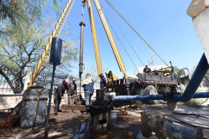 14 Octubre 2023; Torreón, Coahuila.- Personal del Sistema Municipal de Aguas y Saneamiento de Torreón (SIMAS), inició labores de reparación en la bomba número 48 ubicada en la colonia Valle Verde, luego de que esta mañana presentara una falla mecánica.