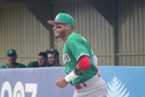 19 Octubre 2023; Santiago de Chile, Chile.- El saltillense Fernando Villegas se convirtió en el primer coahuilense en ver acción en los Juegos Panamericanos Santiago 2023, en la victoria de la Selección Mexicana de Beisbol 16-0 sobre su similar de Chile.