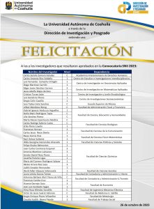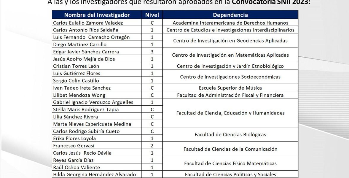 27 Octubre 2023; Arteaga, Coahuila.- Buenas tardes Por este medio hacemos extensivas nuestras más sinceras felicitaciones a las y los 40 investigadoras e investigadores de nuestra Universidad que resultaron aprobados en la Convocatoria SNII 2023 (Nuevo ingreso, permanencia y promoción). Adicionalmente, una mención especial a quienes renovaron o fueron promovidos al nivel III. Un reconocimiento a todos ellos por el esfuerzo realizado. Con estos resultados pasamos de 168 integrantes en el 2018 a 359 en el 2023. En casi 6 años hemos crecido más del 100 por ciento. Enhorabuena!!!