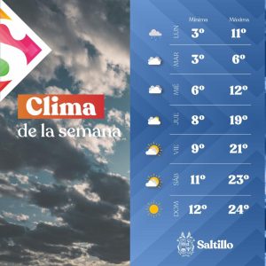 Alberto Neira Vielma, director de Protección Civil y Bomberos de Saltillo, indicó que se esperan temperaturas mínimas que oscilen entre los 3 a 6 grados centígrados y máximas de 6 a 19 grados, entre lunes y jueves próximos.