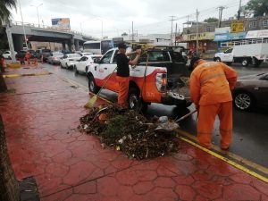 Fernando Villarreal Cuellar, titular de la Dirección General de Servicios Públicos, dio a conocer que las labores se ejecutan con el apoyo de 10 cuadrillas, reforzando los espacios que presentan mayor problemática, y agregó que de las tres toneladas recogidas en los últimos siete días, una corresponde únicamente a lo que va de este lunes.