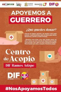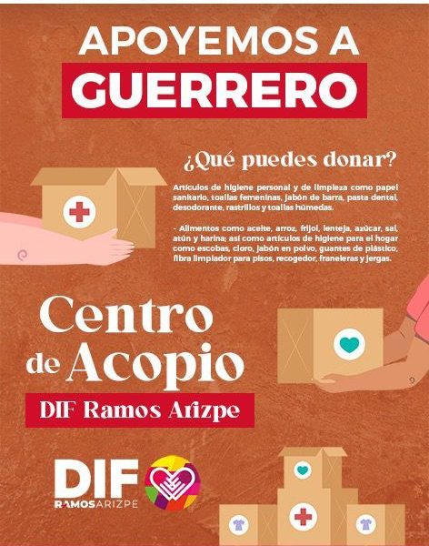 1 Noviembre 2023; Ramos Arizpe, Coahuila.- El gobierno municipal de Ramos Arizpe exhortó a la ciudadanía a participar en la colecta a favor de las miles de familias afectadas por el huracán “Otis”, en Guerrero, por medio del centro de acopio habilitado en las instalaciones del DIF Municipal.