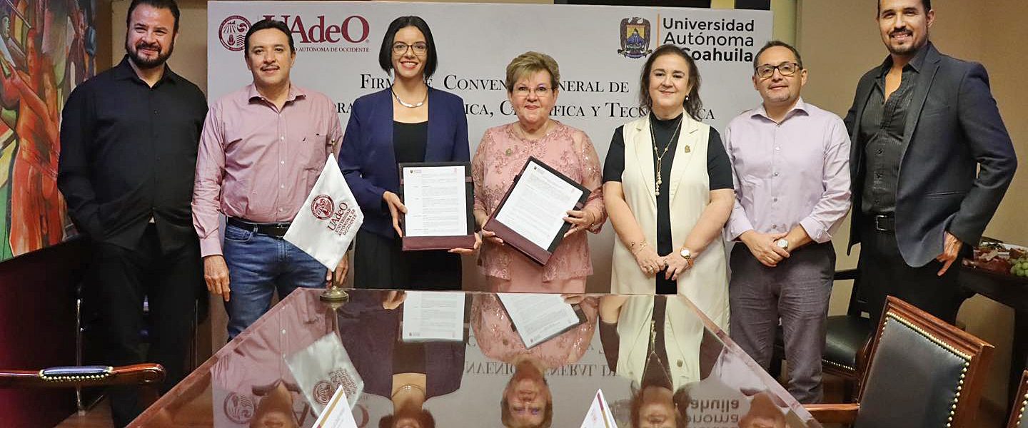 7 Noviembre 2023; Los Mochis, Sinaloa.- El pasado 4 de noviembre la Universidad Autónoma de Coahuila y la Universidad Autónoma de Occidente (UAdeO) firmaron un acuerdo de colaboración que busca impulsar el desarrollo de programas académicos y la investigación científica, tecnológica y humanística en beneficio de ambas instituciones.