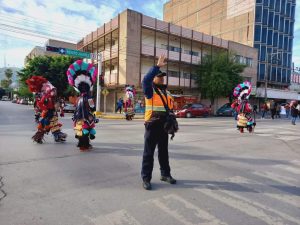 Los elementos trabajan para asegurar la integridad de los peatones y orientan a conductores que circulan por donde se realiza el recorrido de los peregrinos, por lo que se exhorta a la ciudadanía a acatar las instrucciones de tránsito.