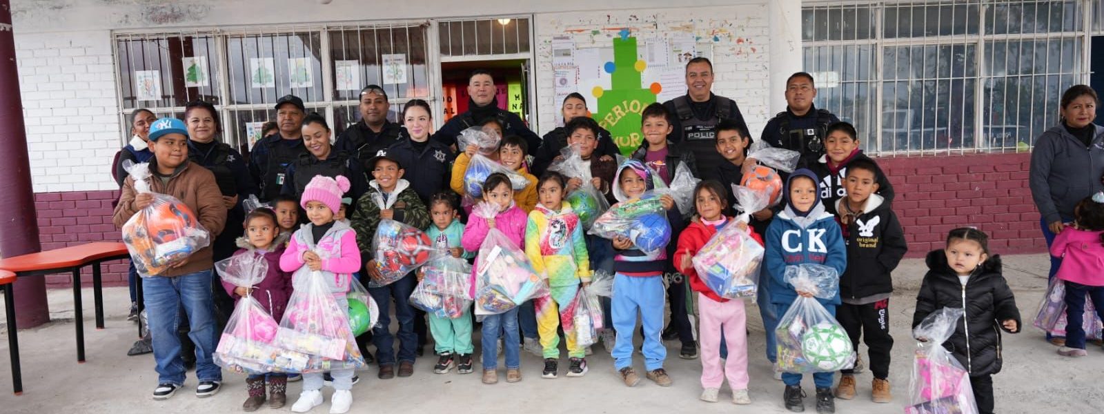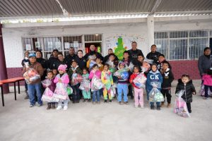El recorrido de la Unidad de Proximidad Social incluyó a menores de preescolar, primaria y secundaria de Landeros, así como a los niños del kínder de Hipólito a quienes también se les entregaron varios obsequios por parte de la corporación.