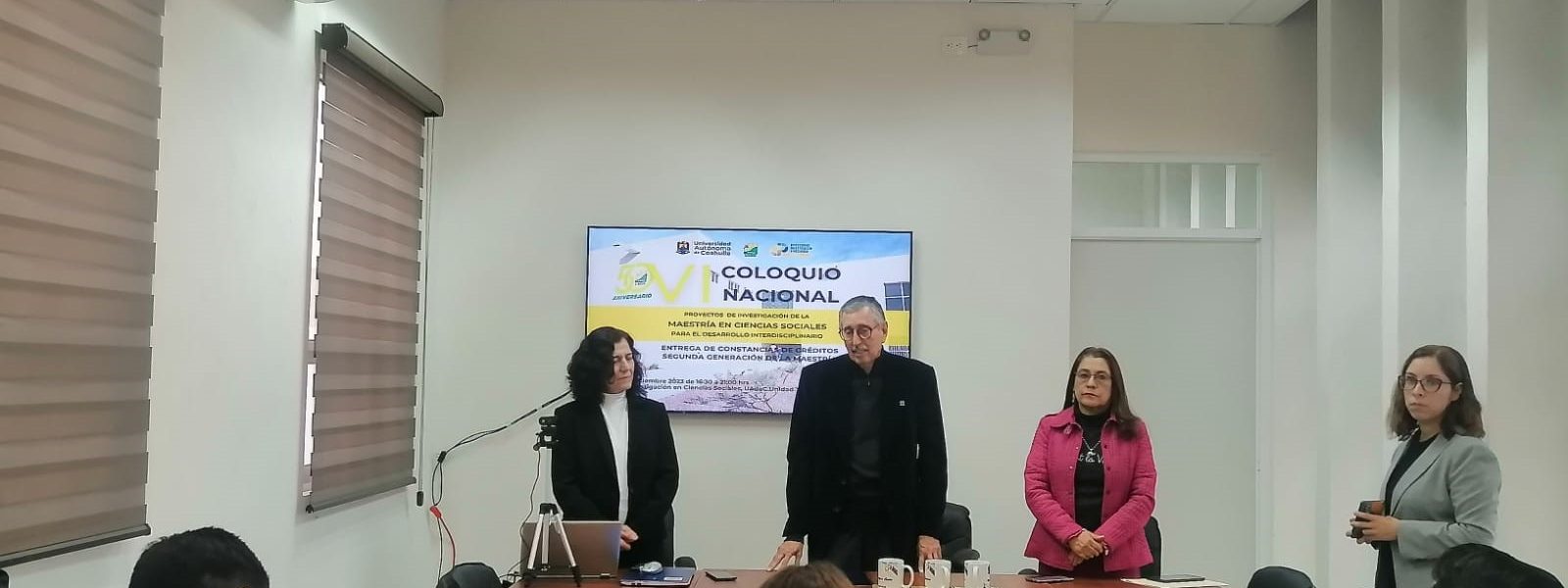 20 Diciembre 2023; Torreón, Coahuila.- El Centro de Investigación en Ciencias Sociales Unidad Torreón de la Universidad Autónoma de Coahuila, llevó a cabo el VI Coloquio de Proyectos de Investigación, así como, la entrega de constancias de créditos a las y los alumnos de la Segunda Generación de la Maestría en Ciencias Sociales para el Desarrollo Interdisciplinario.