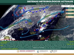 24 Diciembre 2023; Saltillo, Coahuila.- La Subsecretaría de Protección Civil de Coahuila informó que el frente frío número 19 se desplazará sobre el noroeste y norte de México, generando rachas de viento fuertes, chubascos y lluvias intensas acompañadas de descargas eléctricas, así como un ambiente muy frío durante la madrugada en Coahuila.