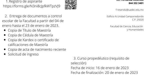 La FCEyH de la UAdeC Abre su Convocatoria para Inscribirse en los Programas de Posgrados en Educación Por Jorge Moreno 07 enero 2023; Saltillo, Coahuila.- Con el objetivo de dar a conocer la oferta académica en Maestrías y Doctorado, la…