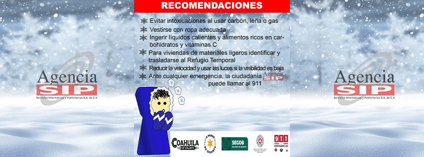 La Subsecretaría de Protección Civil de Coahuila, emite las siguientes recomendaciones: