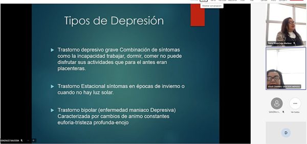 Mencionó los tipos de depresión, como el trastorno depresivo grave, el trastorno estacional y el trastorno bipolar; se discutieron los síntomas característicos de cada uno y se mencionaron los enfoques de tratamiento disponibles.