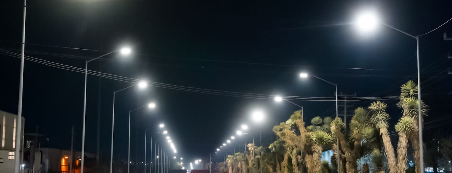 El nuevo sistema de alumbrado público forma parte de la inversión de 20 millones de pesos, destinada por el Gobierno Municipal, para ampliar a cuatro carriles la carretera Los Pinos, a lo largo de los dos kilómetros que comprende el tramo entre el bulevar Miguel Ramos Arizpe y la colonia Valle de los Pinos.