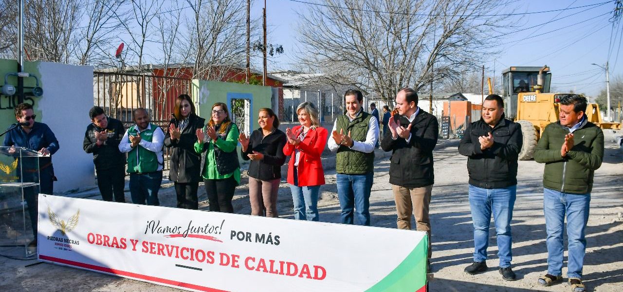 6 Febrero 2024; Piedras Negras, Coahuila.- Reafirmado su objetivo de que en cada sector del municipio se resuelvan las necesidades más urgentes en calles, espacios públicos y de servicios básicos, la Presidenta Municipal Norma Treviño Galindo encabezó el banderazo de arranque a la pavimentación del Callejón del Olvido en el Ejido Piedras Negras, obra que, con una inversión de 1 millón 118 mil pesos, beneficiará directamente a 30 familias.