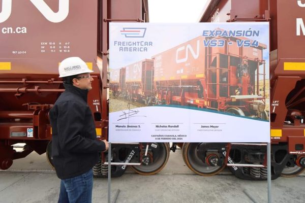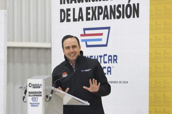 «Así como somos el principal productor de vehículos en México, también somos el número uno en producción de carros de ferrocarril de toda América y seguimos fortaleciendo esta industria ferroviaria instalada en la región centro. Acompañamos a Freightcar a la inauguración de su nueva planta. Con una inversión de 600 millones de pesos y 500 nuevos empleos vamos pa’ delante en el fortalecimiento de la economía de esta región de Coahuila. Con el plan que tenemos a través del eje Coahuila Global y ProCoahuila vienen más inversiones con mejores empleos para nuestra gente», señaló Jiménez Salinas.