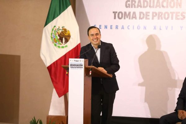 Jiménez Salinas expresó que la mejor manera de honrar la confianza que las instituciones hoy están depositando en cada una y cada uno de los graduados es cumpliendo; que su trabajo esté ligado con que las y los coahuilenses tengan una mejor calidad de vida, que nuestra gente esté protegida y cuidada.