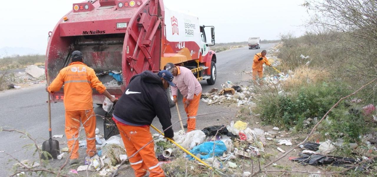 24 Febrero 2024; Torreón, Coahuila.- Por cuarta ocasión en lo que va de la actual Administración Municipal, la Dirección General de Servicios Públicos realizó labores de limpieza a lo largo de la carretera a Santa Fe, desde el Periférico hasta el bulevar Torreón Matamoros, pues se trata de una vialidad en la que algunos ciudadanos reinciden en tirar basura sobre los lugares que ya fueron atendidos.