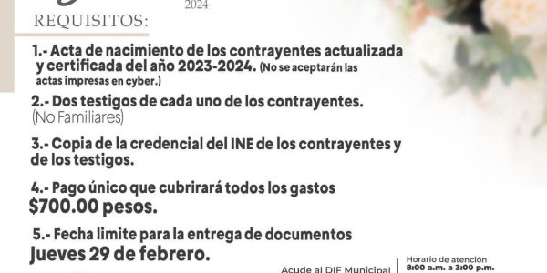 EL SISTEMA DIF AMPLIÓ HASTA EL 29 DE FEBRERO EL PLAZO PARA INSCRIPCIÓN AL PROGRAMA BODAS COMUNITARIAS; 80 PAREJAS HAN CUMPLIDO YA CON EL TRÁMITE