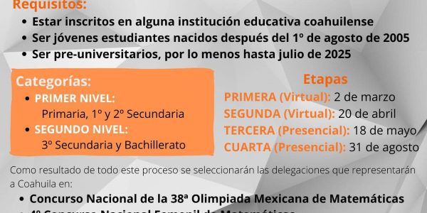 La UAdeC y la Sociedad Matemática Mexicana Convocan a Participar en la 38ª Olimpiada Mexicana de Matemáticas Etapa Estatal Coahuila