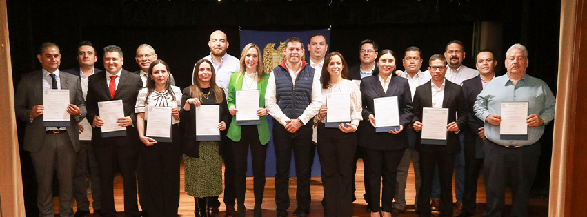 Recibieron nombramientos de la Coordinación General de Extensión Universitaria, como subcoordinador de Desarrollo Comunitario, Tokio Abel Vargas Campos y subcoordinador Administrativo, Edgar Iván de Santiago Ochoa; de la Coordinación General de Vinculación e Innovación Productiva, subcoordinadora general, Ángela Gabriela Molina Arriaga y subcoordinador General de Planeación y Gestión, Carlos Federico Robledo Flores.