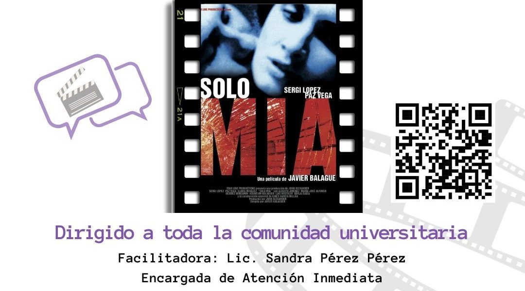 Esta sesión se centrará en el análisis de la película “Solo mía”, una producción española protagonizada por Sergi López y Paz Vega, dirigida por Javier Balaguer, basada en la violencia machista y es la primera película hecha en España que trata el tema de la violencia de género.