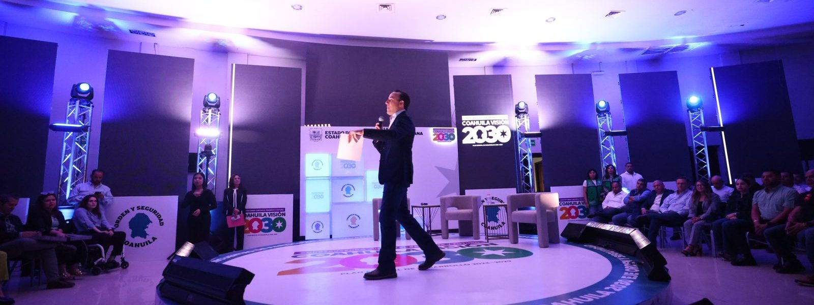13 Marzo 2024; Piedras Negras, Coahuila.- Como parte de la Visión Coahuila 2030 y con el objetivo de tomar en cuenta el sentir y pensar de las y los coahuilenses en el fortalecimiento del Plan Estatal de Desarrollo 2023-2029, el gobernador Manolo Jiménez encabezó el primer encuentro de participación ciudadana en Piedras Negras, con el eje Orden y Seguridad.