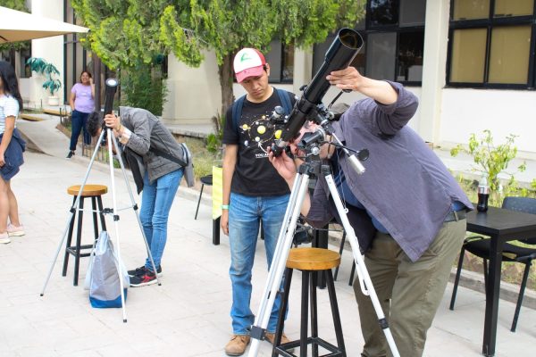 También instalaron tendederos con lentes certificados, igual que en la Facultad de Odontología, y en coordinación con estudiantes de Posgrado de la Universidad Autónoma de San Luis Potosí, colocaron un telescopio, dos binoculares y cámaras, a través de los cuales estudiantes, niños y padres de familia pudieron observar este 8 de abril este fenómeno celeste único, que tuvo lugar este año y que no se repetirá en territorio mexicano hasta el año 2052.