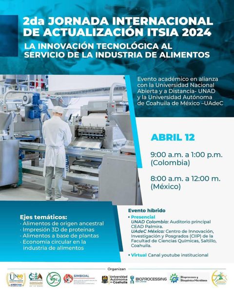 10 Abril 2024; Saltillo, Coahuila.- En un esfuerzo por fortalecer los lazos académicos y promover la internacionalización del conocimiento, la Universidad Autónoma de Coahuila en colaboración con la Universidad Nacional Abierta y a Distancia (UNAD) de Colombia, invitan la Segunda Jornada Internacional de Actualización (ITSIA) 2024: «La innovación tecnológica al servicio de la industria de alimentos».