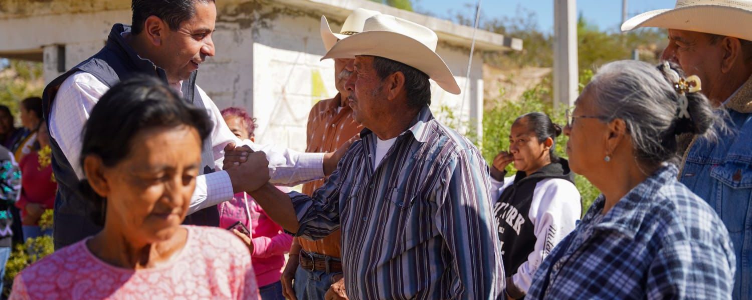 Junto al secretario de Desarrollo Rural, José Humberto García Zertuche, el edil se reunió con los pobladores para constatar el funcionamiento de 14 piezas de panel fotovoltaico, inversores, entre otros suministros, que permitirán la extracción del vital líquido a través de la energía solar.