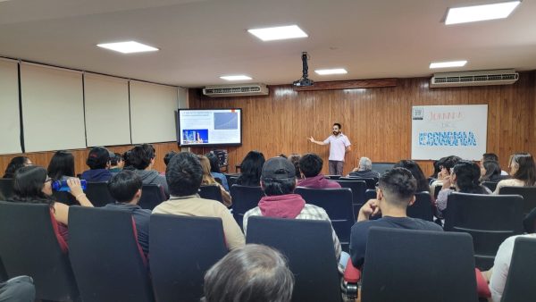 El primer día de la Jornada que inició el 10 de abril, se abordó el tema Ambiental, en la Sala Audiovisual del plantel se impartió la conferencia “Economía sostenible ¿Hay tiempo?”, a cargo del Dr. David Tinoco, así como, “El futuro de la economía ¿sostenible, verde o regenerativa?”, por el Dr. Lorenzo Barbosa.