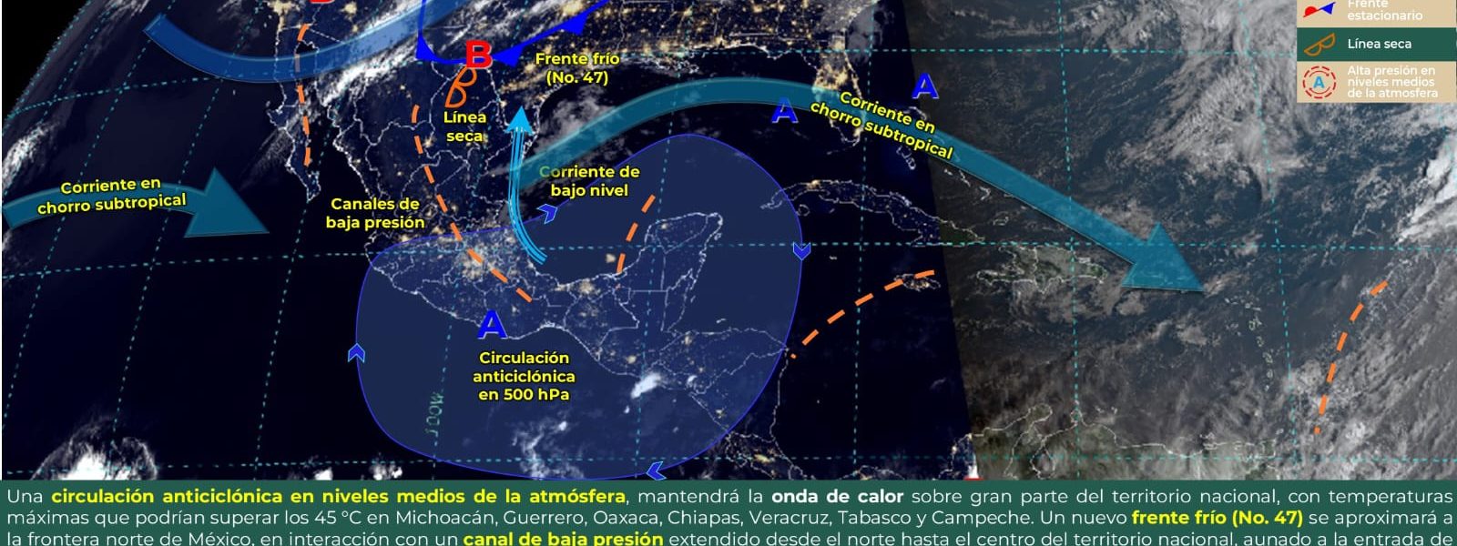 19 Abril 2024; Saltillo, Coahuila.– La Subsecretaría de Protección Civil del Estado informa que, en el día de hoy, la onda de calor continuará afectando a gran parte del territorio nacional. Adicionalmente, el acercamiento del frente frío número 47 a la frontera norte de México provocará lluvias puntuales fuertes en Coahuila, las cuales estarán acompañadas de descargas eléctricas y posible caída de granizo.