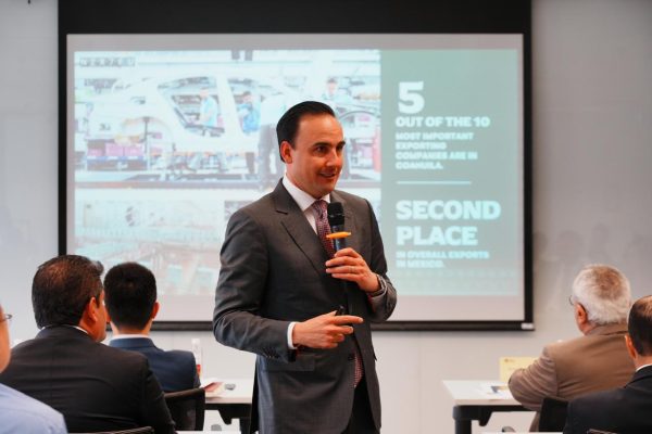 En sus entrevistas con inversionistas asiáticos, Manolo Jiménez expuso las bondades con las que cuenta Coahuila, como su posición geográfica privilegiada, las características de las cinco regiones que componen el estado, el tipo de industria instalada en la entidad, los programas educativos, las zonas de hospedaje industrial, así como que Coahuila es el estado más seguro del norte de México y uno de los más seguros del país, lo que brinda certeza y confianza.