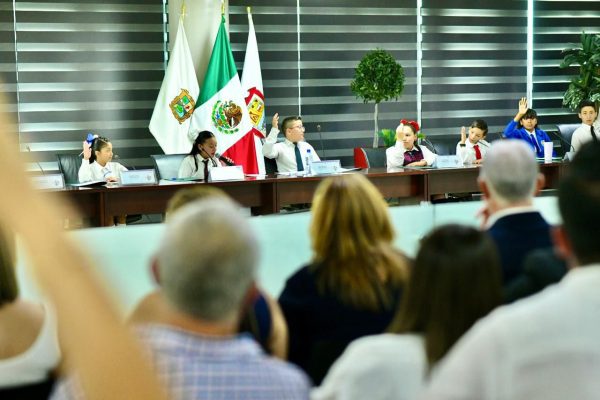 30 Abril 2024; Torreón, Coahuila.- En el marco de la celebración del Día del Niño, esta mañana se celebró la Sesión del Cabildo Infantil 2024, en donde los ediles revisaron y aprobaron propuestas relacionadas con el cuidado del medio ambiente en beneficio de las familias torreonenses.