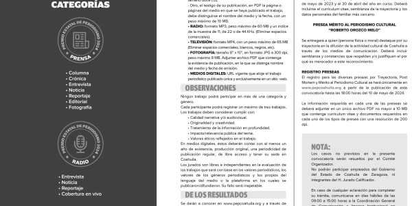 LANZA EL GOBIERNO DE COAHUILA LA CONVOCATORIA PARA EL PREMIO ESTATAL DE PERIODISMO 2024