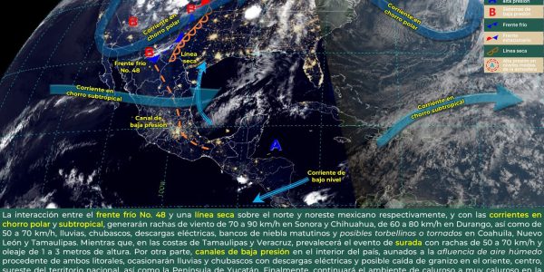 SE ESPERAN LLUVIAS Y VIENTOS FUERTES EN COAHUILA Por Jorge Moreno 27 Abril 2024; Saltillo, Coahuila.- La Subsecretaría de Protección Civil del Estado (PC) informó que hoy sábado, la interacción entre el frente frío número 48 y una línea seca…