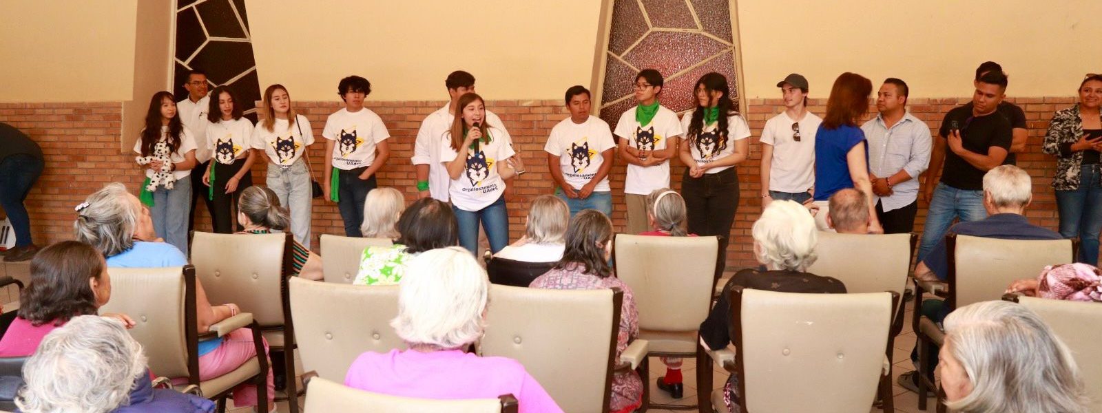 6 Mayo 2024; Saltillo, Coahuila.- El Equipo Verde de Lobos en Acción de la Universidad Autónoma de Coahuila, visitó el Asilo “Ropero del Pobre” para llevar actividades de convivencia, al tiempo que entregaron artículos de higiene personal para los adultos mayores que residen en el lugar.