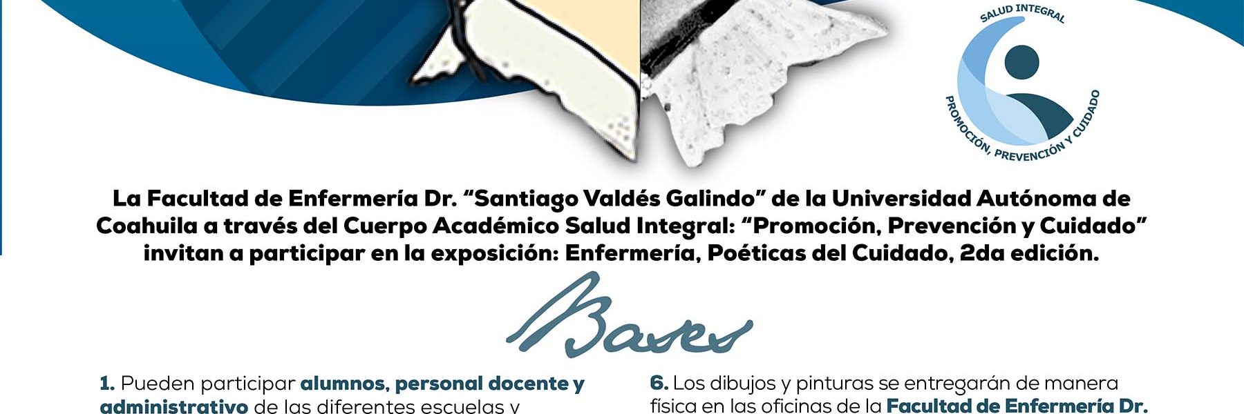 9 Mayo 2024; Saltillo, Coahuila.- La Facultad de Enfermería Dr. “Santiago Valdés Galindo” de la Universidad Autónoma de Coahuila a través del Cuerpo Académico Salud Integral “Promoción, Prevención y Cuidado” invitan a participar en la exposición “Enfermería, Poéticas del Cuidado”, en su segunda edición.