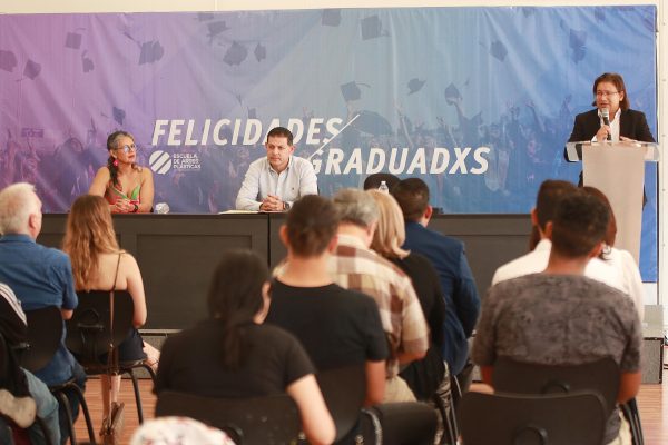La ceremonia se llevó a cabo en el Salón Centenario, con la presencia del rector de la máxima casa de estudios, Octavio Pimentel Martínez, el director de la Facultad de Artes Plásticas, Darío D. Aguillón Gutiérrez, funcionariado universitario, alumnos y docentes.